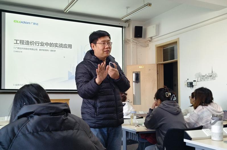 为提升学生对工程造价管理的实践认知与前沿了解,建设管理与运维系邀请广联达科技股份有限公司的金牌讲师胡昕宇女士和天津地区客户经理谢子涵女士于3月19日莅临课堂,通过案例教学与同学们展开深入交流,为课程注入了鲜活的行业力量。