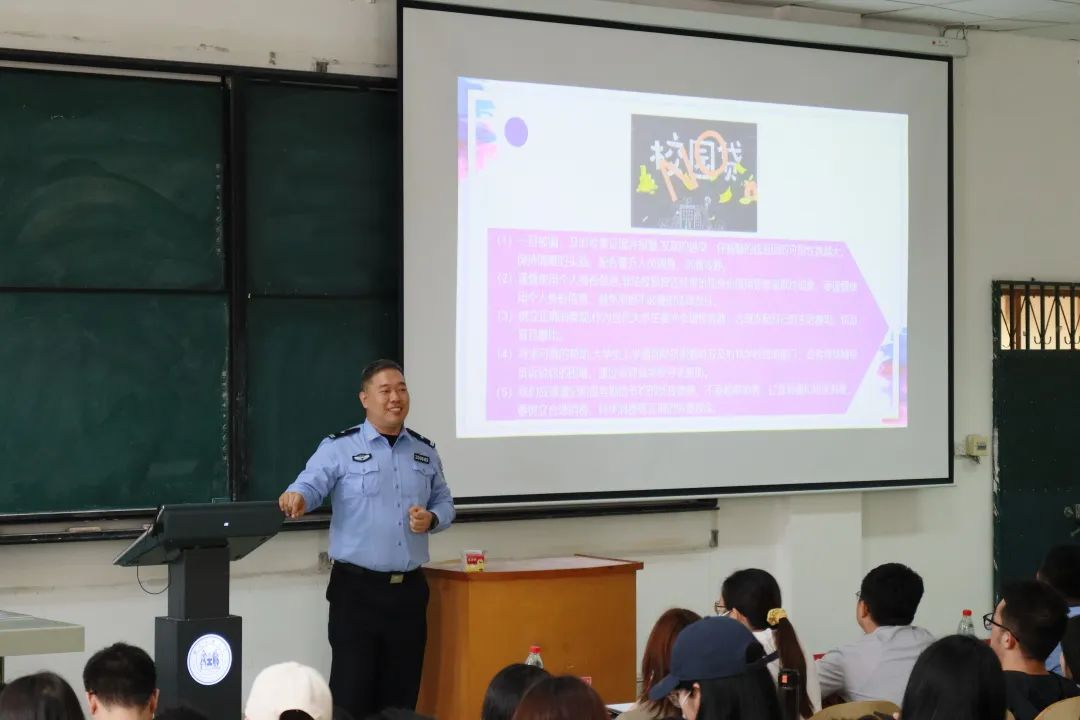 之后,杜所长又针对电信诈骗这一残害大学生的“毒瘤”作了详细的讲解。分析了“糖衣”背后的“炮弹”,最大限度地保障了学生的财产安全。各位民警同志也结合近期的实际案例介绍电信诈骗的最新手段,同学们表示对电信诈骗有了更透彻的了解。相信经过此次的讲座,同学们都不会再轻信电信诈骗的套路。