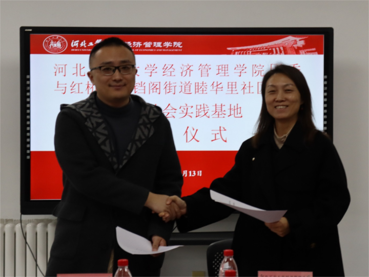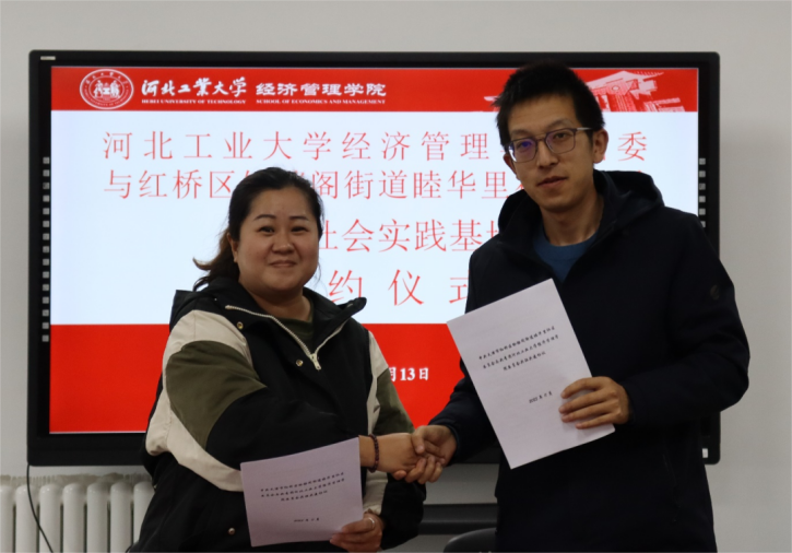 学院党委书记赵钊指出,我院师生应当立足红桥,放眼京津冀发展。他表示,我院师生应当充分利用所学知识投身于社区服务建设,做到身处红桥、扎根红桥、服务红桥,充分积累经验、增强个人素养与知识储备,为京津冀同城商务区发展出一份力。同时感谢团区委的牵头,让学生能够通过更多的志愿活动融入社会。接着,经管学院党委与铃铛阁街道党工委签约,经管学院团委与睦华里社区签约。