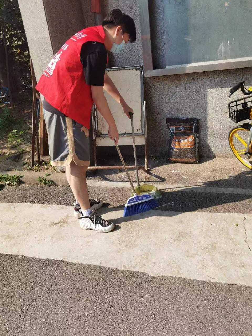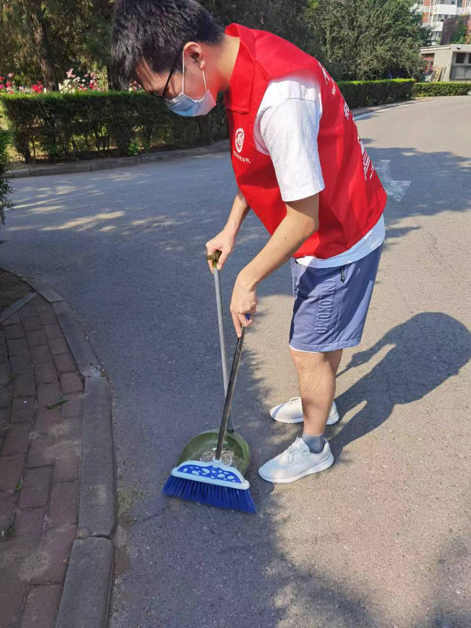 5月23日起,每天三名志愿者在北院大门口及左侧便道区域进行着校园环境清扫工作。携带着清扫工具,志愿者们迅速进入状态,清扫垃圾、捡拾树叶等等。虽忙碌不已,却也乐在其中,在丝丝热意到来之际,给校园添几分清爽,使自己在劳动中静心。