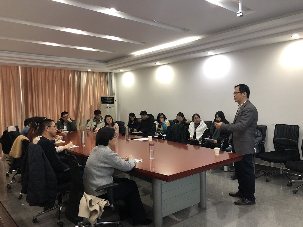 李勇建教授用幽默风趣的语言,从国家社会科学基金和国家自然科学基金的区别、如何选题、如何论证及注意问题等方面翔实、具体的分享了两个国家基金项目的申报经验。最后,李教授针对每个老师的申报书进行了一对一的交流指导。