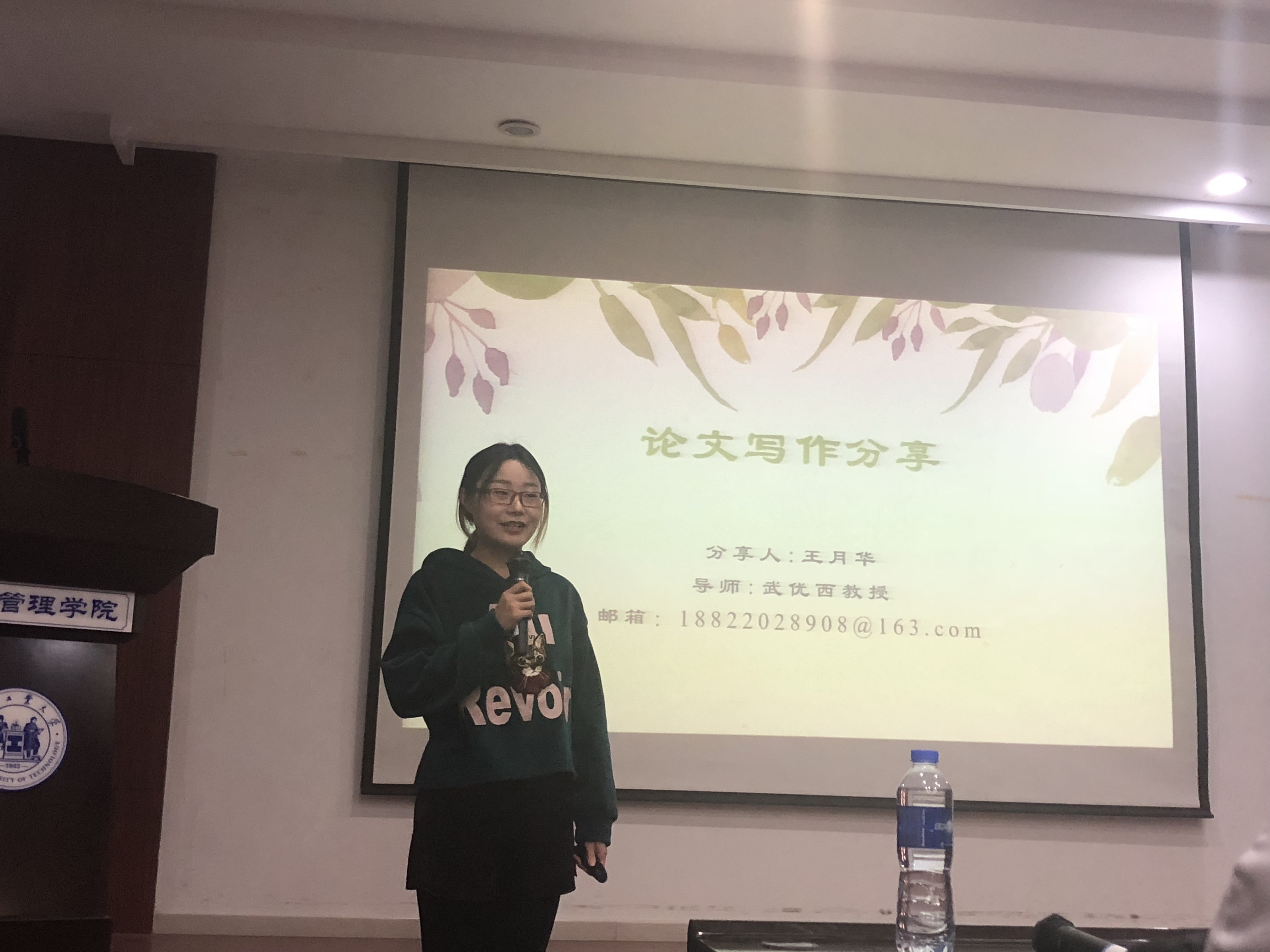 王荣同学,从选题渠道、引言、文献查找、文献整理与写作四个方面传递经验与知识。她提出了自己的一些新见解,如选题时,寻找与老师相关的感兴趣的点、跟随老师已有的项目、跟随本方向研究专家、大牛或者最新审批的国家自科、社科项目。引言部分,要学会陈述亮点、有理有据、逻辑清晰、惜字如金。