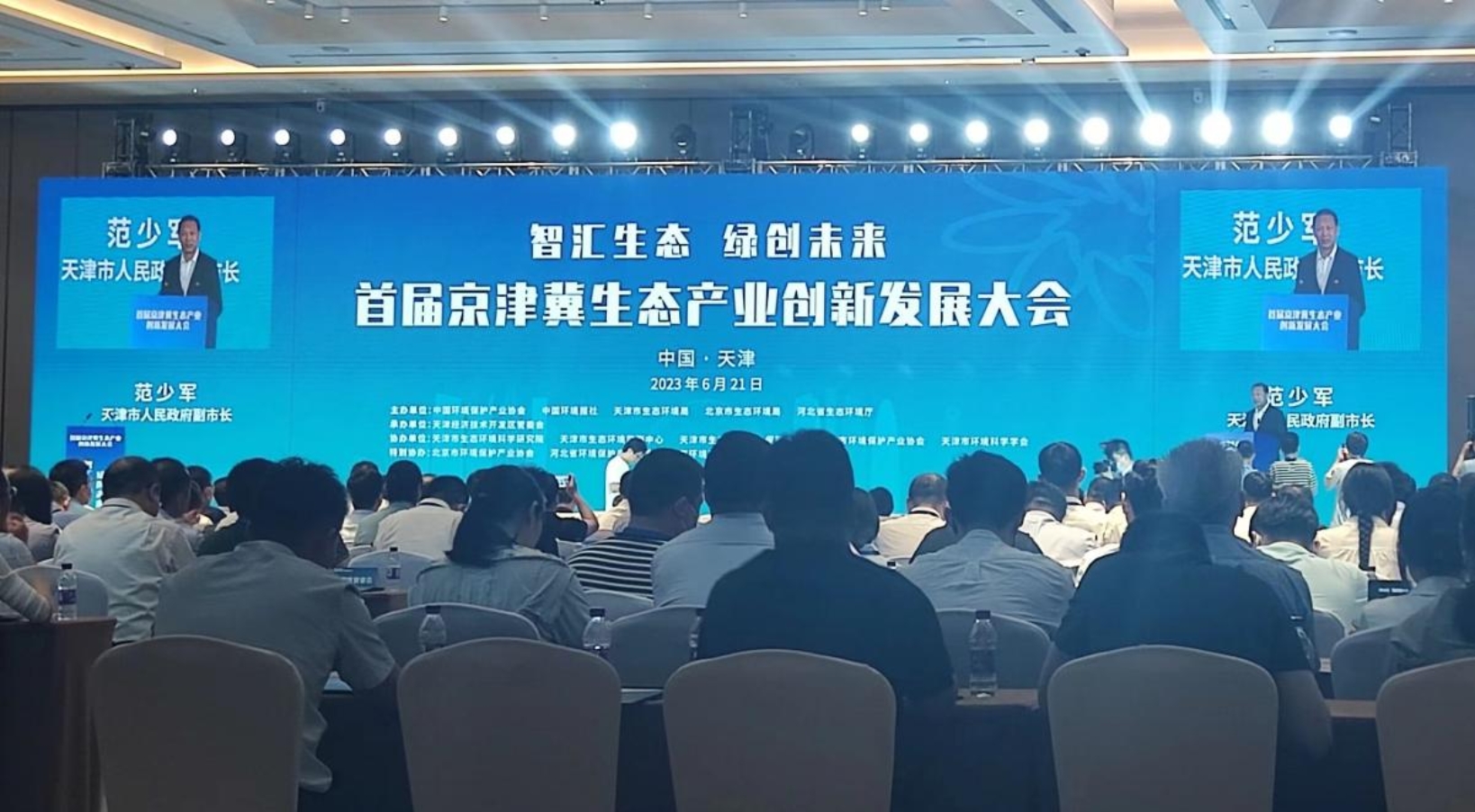 2023年6月21日,“智汇生态 绿创未来”首届京津冀生态产业创新发展大会在天津市经济技术开发区于家堡洲际酒店隆重举行。本次大会由中国环境保护产业协会、中国环境报社、天津市生态环境局、北京市生态环境局和河北省生态环境厅主办,天津经济技术开发区管委会承办,天津市生态环境科学研究院、天津市生态环境监测中心等多家单位协办。中央企业科研院所、京津冀三地高校、环保产业协会和环境学会、企业(园区)、金融机构、技术设备供应商及媒体代表出席会议。我院党委书记赵钊、副院长马苓及部分硕士研究生参加了此次会议。