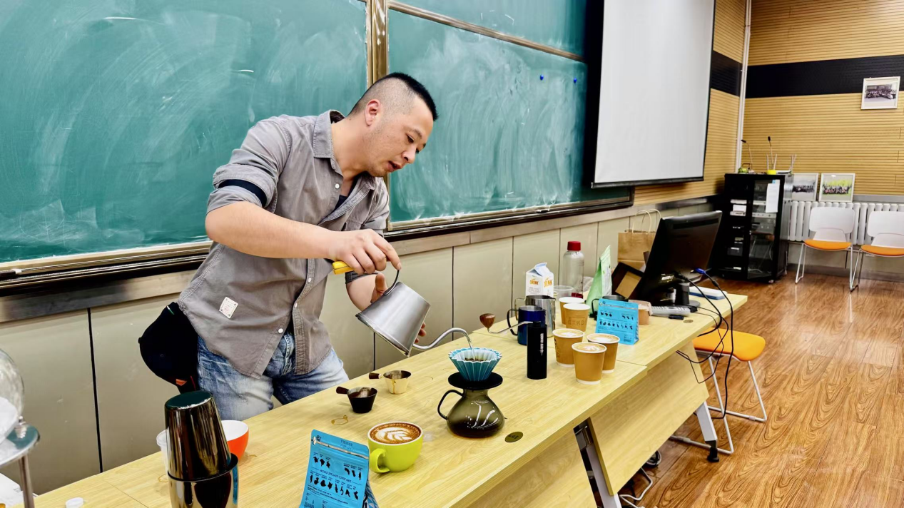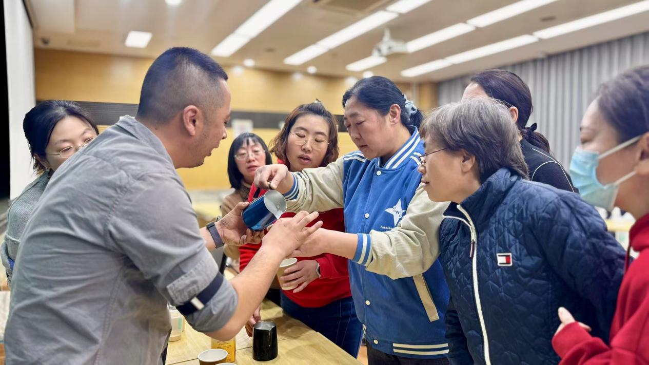 分享完理论知识后,咖啡师现场演示了手冲、意式浓缩、冰滴壶等不同冲泡方式的技巧,并重点解析了水温、粉水比、萃取时间等关键参数对风味的影响。在咖啡师的指导下,教职工们化身“咖啡匠人”,亲手体验了从磨豆、注水、拉花的完整流程。