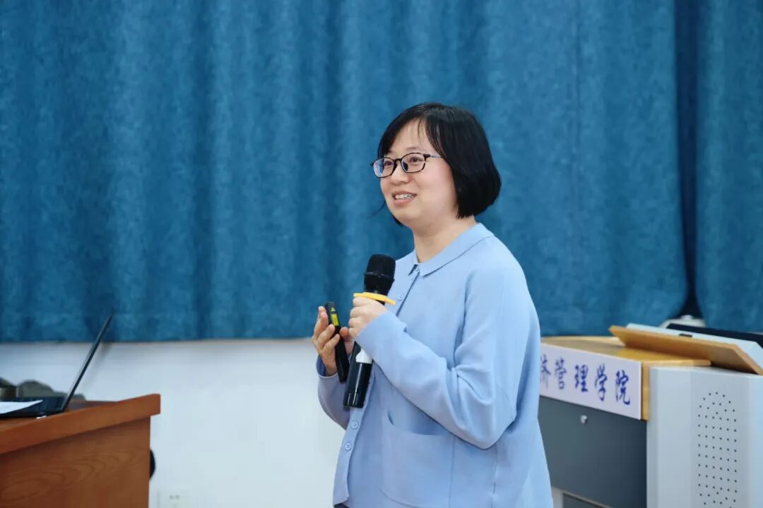 陈阳阳围绕《企业伦理》核心课程师资研讨会经验展开分享。她提出要先整体重构课程与教学目标,在内容设计上更聚焦伦理素养培育与公民责任塑造,通过典型案例导入、章节思考、小组讨论等形式深化学生对AI时代企业伦理问题的认知。同时借鉴同行经验,引入情景剧等多元教学形式,建立人机协同教学规范,明确AI应用场景边界,推动课程高阶性建设。