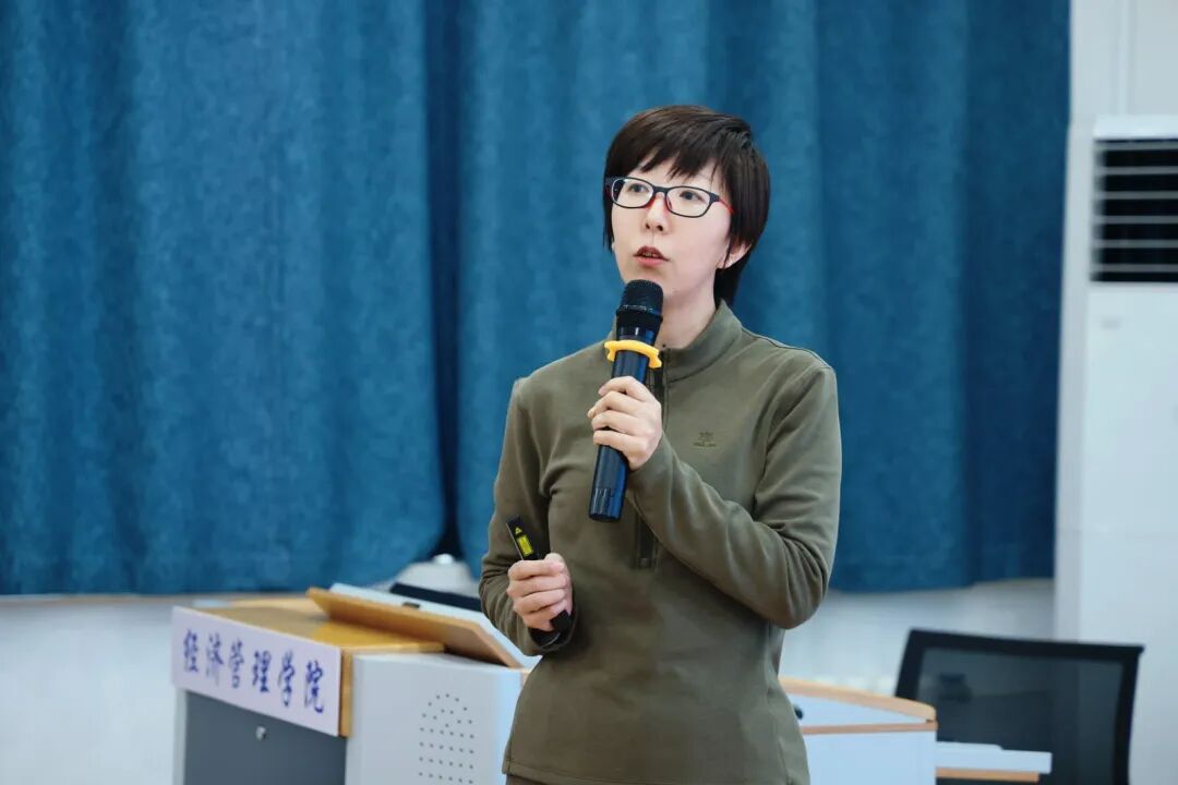 杨芳围绕《管理行为科学》课程,分享了2025年度西部MBA院校师资培训会的收获。她提到奚恺元教授的课程基于行为经济学,以九对思维矛盾为载体,采用问答式教学,通过问卷、游戏等互动形式讲解“沉没成本”“心理账户”等决策误区。她借鉴该模式,在课程中增加讨论与游戏环节,并根据学生对游戏与海报运用的偏好调查,优化任务设计,平衡理论框架与实践体验。